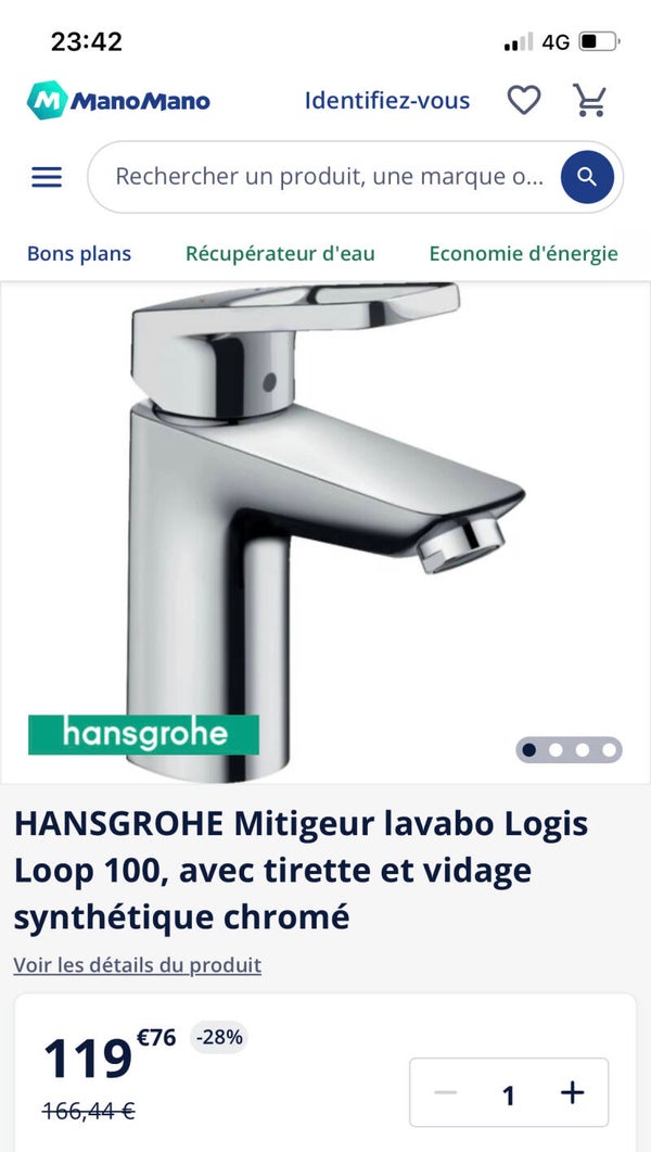 Mitigeur de lavabo Hansgrohe Logis Loop eau chaude et froide