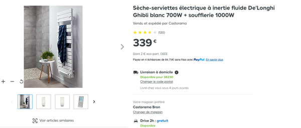 Sèche-serviettes électrique à inertie fluide De'Longhi Ghibli blanc 700W + soufflerie 1000W