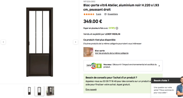 Bloc-porte vitré Atelier, aluminium noir H.220 x l.93 cm, poussant droit