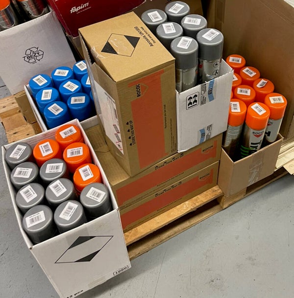 Bombe traceur de chantier Orange, Bleu, Vert et gris TRAIT VITE