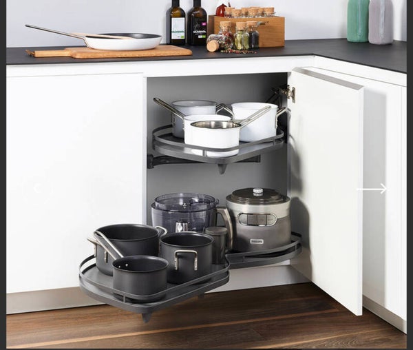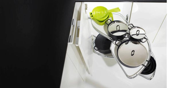 Davantage d’efficacité et de flexibilité : Grâce au réglage de la hauteur, les casseroles hautes trouvent toutes leur place de rangement et restent toujours directement à portée de main. L‘exploitation optimale des recoins !